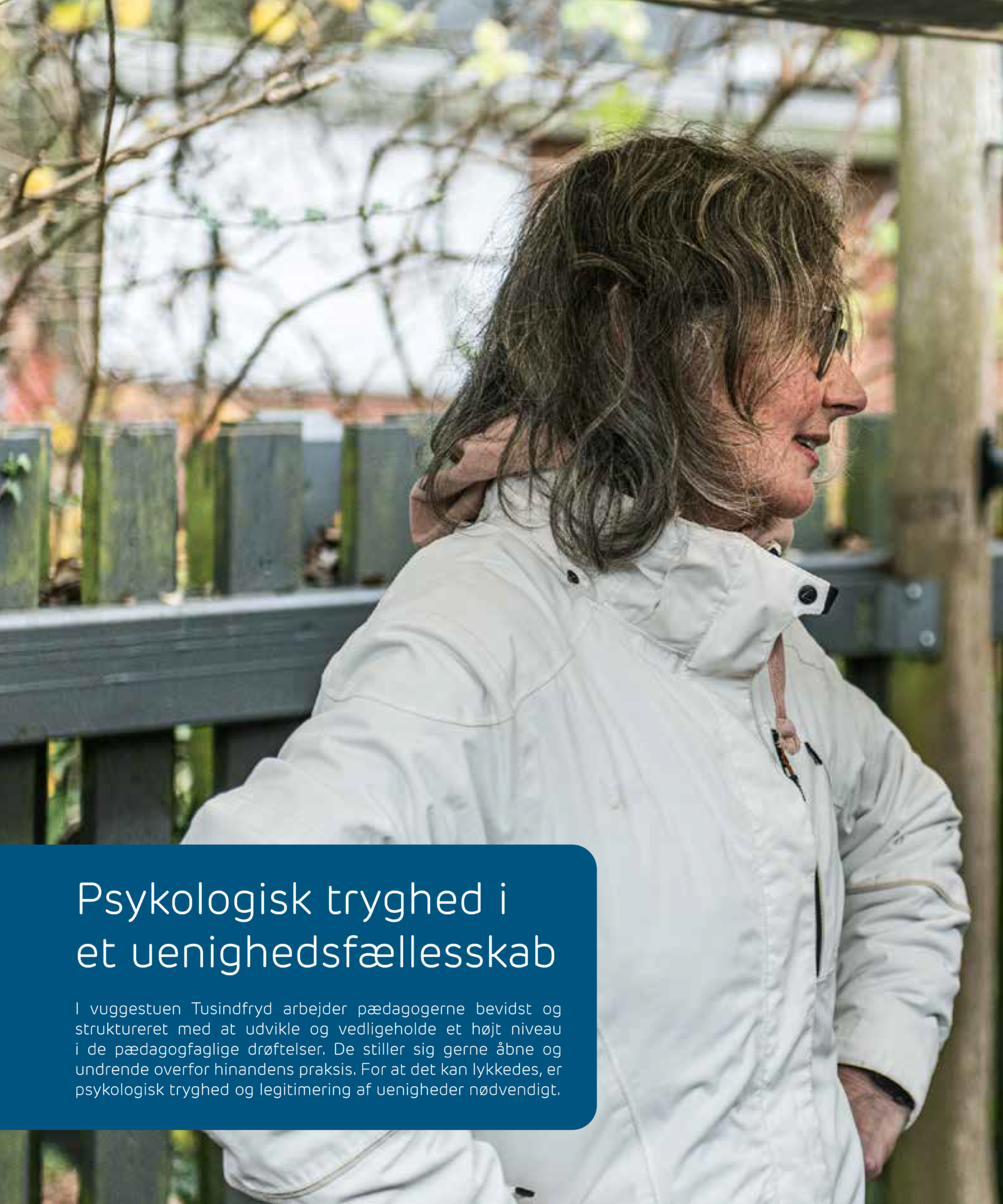 Personalet i Vuggestuen Tusindfryd har de seneste 3 år ventet på at skulle flytte fra deres nuværende bygning til en nybygget integreret institution. Flere forsinkelser i byggeriet har skabt usikkerhed i tidsrammen omkring institutionens fremtidig, både hos medarbejdere, ledelse og forældre. Det har betydet, at diverse processer omkring forsinkelse, udskydelser i indflytning, byggemøder, økonomimøder, møder om indretning, møder med forældre, om hvad de stilles i udsigt osv. har fyldt en del i hverdagen. Dertil kommer at der også løbende må organiseres med hensyntagen til møder med eksterne samarbejdspartnere fra byggeafdelingen.