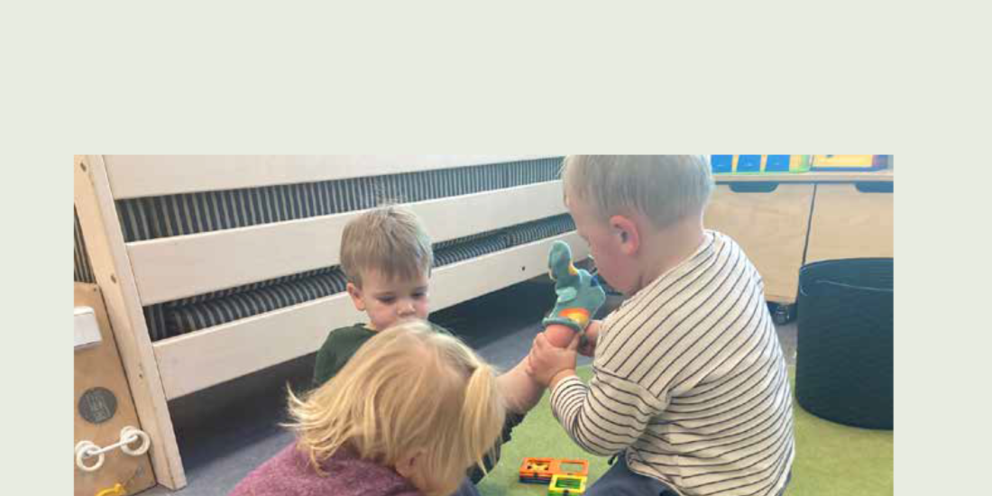 Jeg er med til det ugentlige børnemøde i en af børnehavestuerne i Den Grønne Kile i Lejre Kommune. Børn og voksne har fordelt sig i mindre grupper og samtalen handler om, hvilke ideer børnene har til fælles lege, temaer og aktiviteter. Den Grønne Kile er i gang med at implementere Nest-pædagogik og har blandt andet fokus på, hvordan det daglige læringsmiljø tager afsæt i børneperspektivet. Med afsæt i Nest-pædagogikkens værdier arbejder Den Grønne Kile med at inkludere børnenes interesser i udviklingen af meningsfulde og inkluderende læringsmiljøer. Der lægges vægt på børnenes perspektiver, tanker og ønsker og dermed inddrages de aktivt i hverdagens pædagogiske aktiviteter.