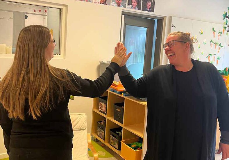 Chefen for Dagtilbud i Hedensted Kommune trækker på smilebåndet, han spørger, da vi er på vej ind til et fælles kommunalt ledermøde. ”Måske” hører jeg mig selv svare – og chefen vender sig overrasket rundt: ”Jeg booker dig lige i kalenderen til et møde i næste uge!” Hedensted Børneunivers består af to institutioner, Lykkebo og Spiloppen, der efter en sammenlægning ledelsesmæssigt i 2019, fik fælles leder – jeg var afdelingsleder i det ene hus – og derudover var der en afdelingsleder i det andet hus. Den daværende leder rejste kort efter sammenlægningen i 2022 blev stillingen igen slået op – det lykkedes ikke at få den besat, og derfor blev vi som afdelingsledere konstitueret i hver vores institution. Det var i samarbejde med BUPL et pilotprojekt: ”Delt Ledelse”, der i forvejen kørte et andet sted i Hedensted Kommune. Projektet gik ud på, at vi som afdelingsledere, delte den fælles ledelse – og blev konstituerede ledere i hver vores institution.